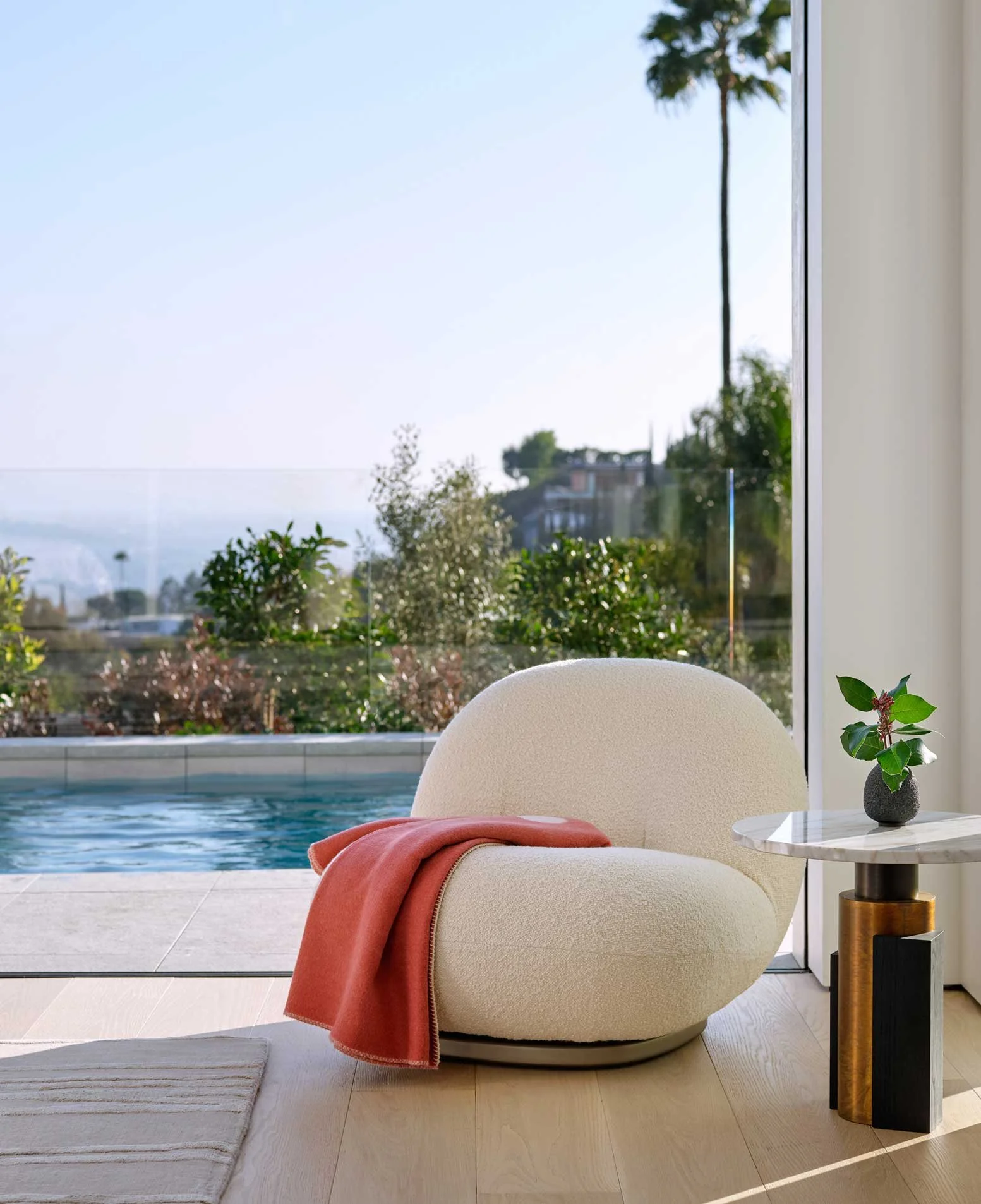 This quintessential California retreat is crowned with an outdoor lounge and a pool that perfectly frame breathtaking city views. Expansive living areas integrate nature’s elements, promoting well-being and a serene state of mind.